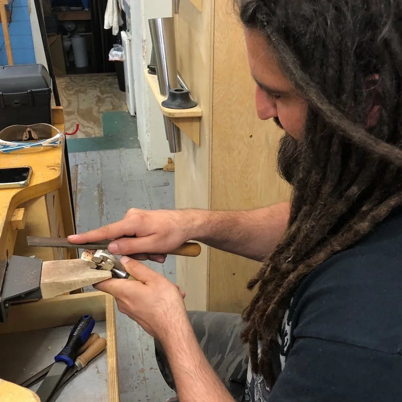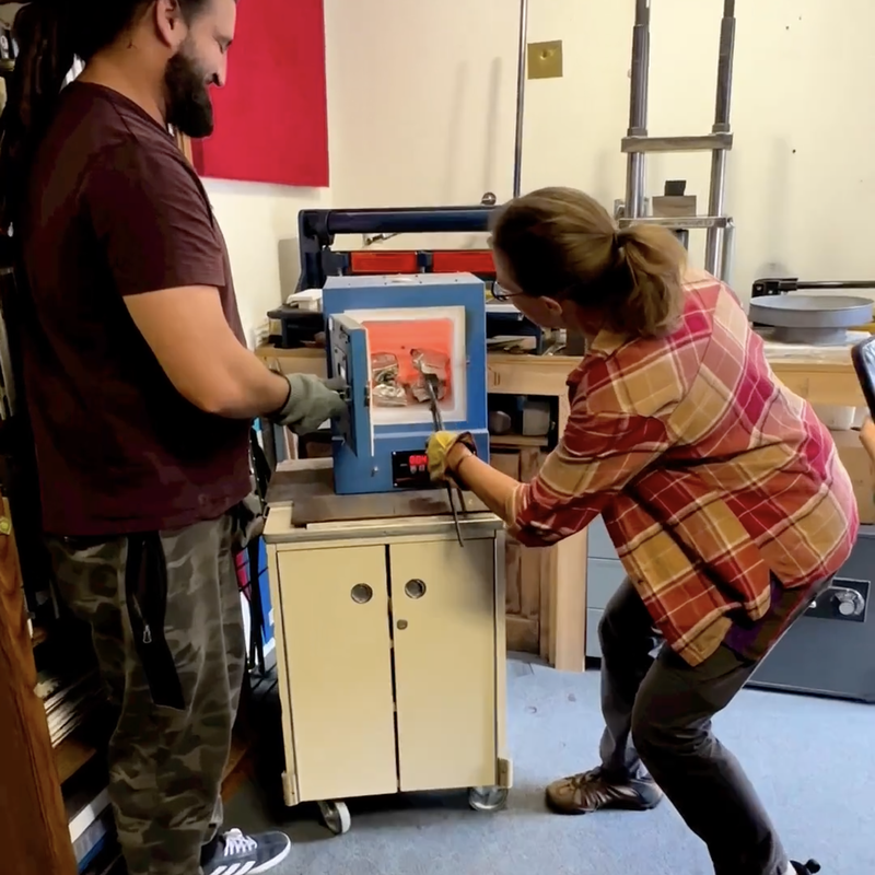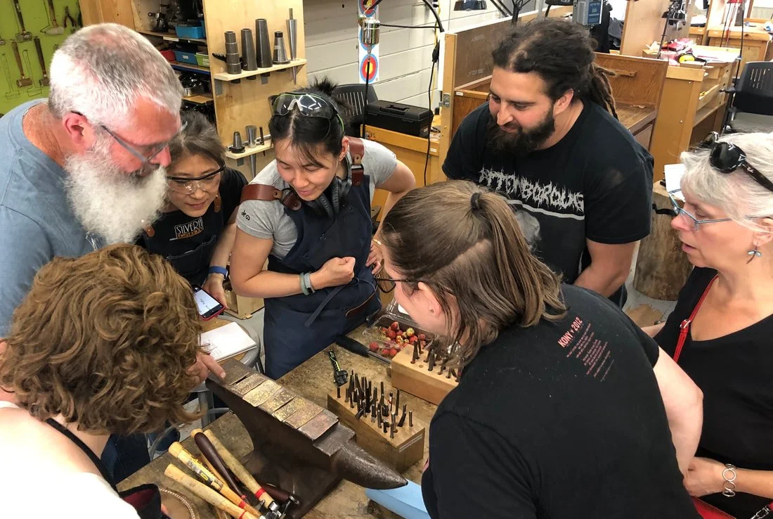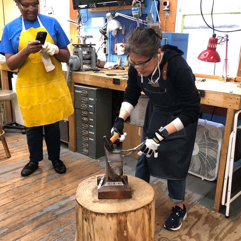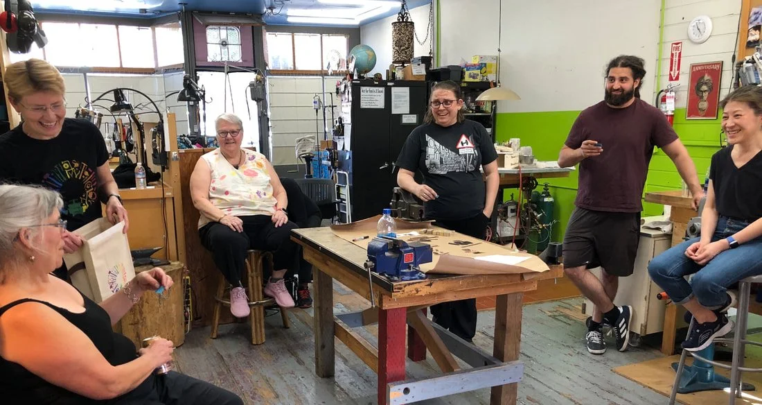 6/20/23 - What a joy to finally teach at Danaca Design in Seattle. It's an amazing space; a warren full of all the tools you'd need, separate spaces for a supply shop/library, machine room/patinas/polishing, spread out benches for plenty of room to work; an all-around great vibe. And a quite serviceable coffee shop two doors down, that was a bonus. Dana has built a studio/school/community to be proud of.