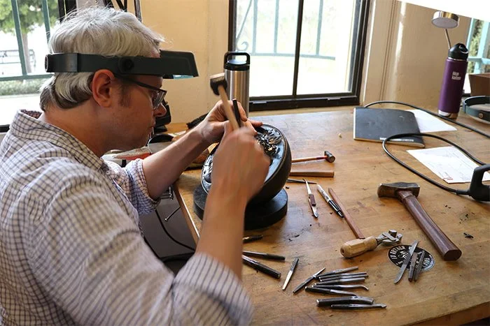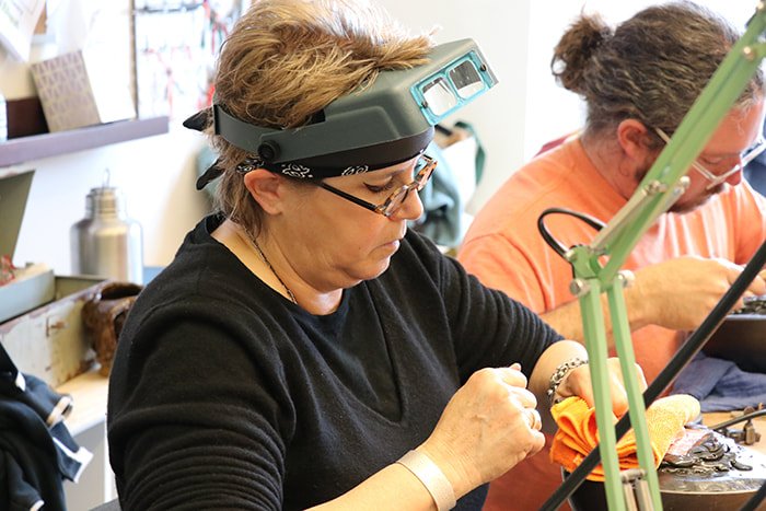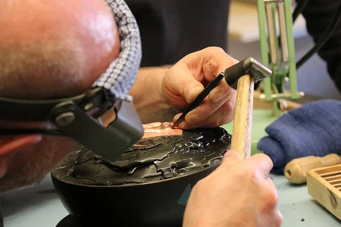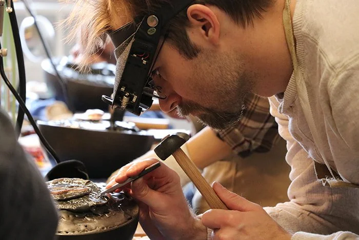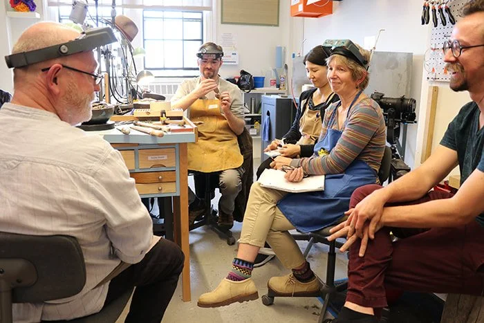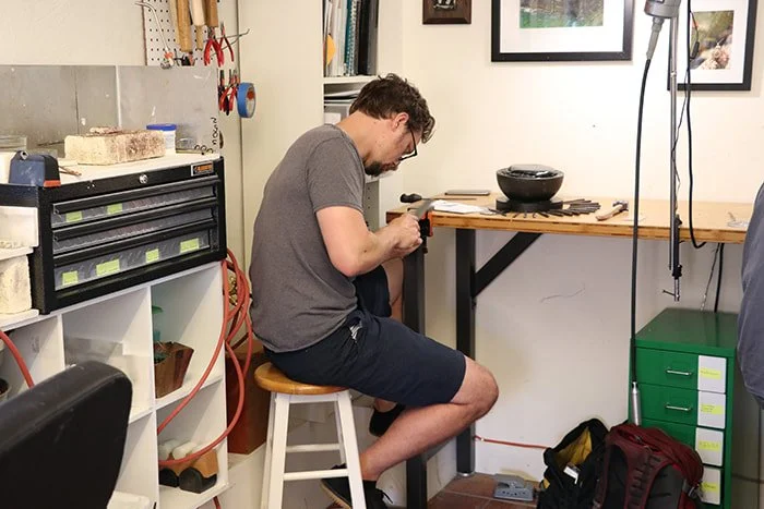 During the traditional raffle and wrap-up session, we learned from the participants how much it meant to them to be able to study with Ford. More than one confessed they had studied Ford's patreon how-to videos late at night, sometimes falling asleep to the gentle tippy-tap of his hammer and chisel. Eyes were misty as they spoke about how seeing his work changed their lives. Ame and I also felt pretty misty-eyed, realizing our part in bringing together this diverse group of artists to learn from Ford but also from each other. Moments like these are why we created Anneville Jewelry Lab.