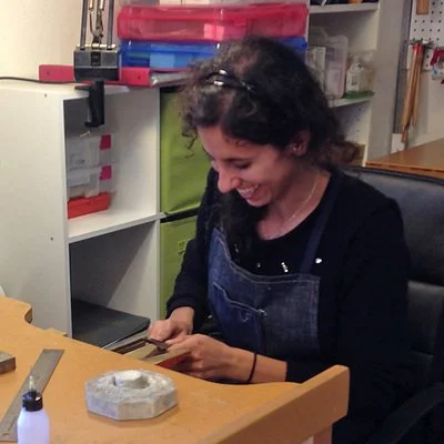 1/27/2016 - Francesca's first day at Anneville Studio. I’m very excited to introduce my first intern, Francesca Urciuoli. Francesca is a talented jewelry artist from Perugia, Italy who will be assisting me and advancing her jewelry/metals studies here at Anneville for the next few months. Francesca will be helping out with my classes at Anneville Studio and volunteering at WCCPL, sharing with us her unique skills and outlook.