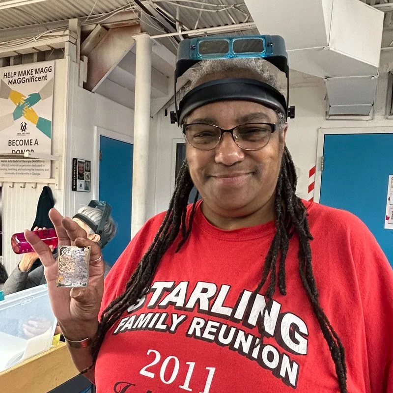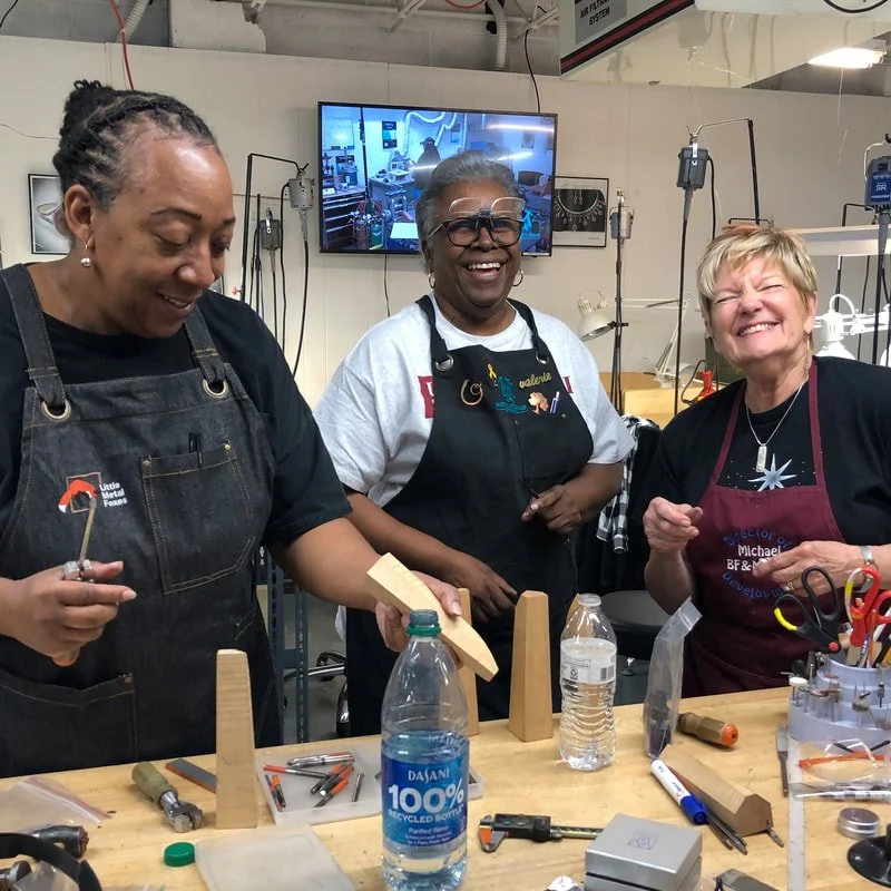 So many chisels! My recent 3-day workshop at Metal Arts Guild, Georgia was a blast. The hybrid format was a challenge at first, but rewarding to figure out ways to get all the students learning and interacting. I loved seeing the in person students walk by my computer and laugh and chat with the Zoom folks. I was pleased to see so many students sporting their Mondobop gear.