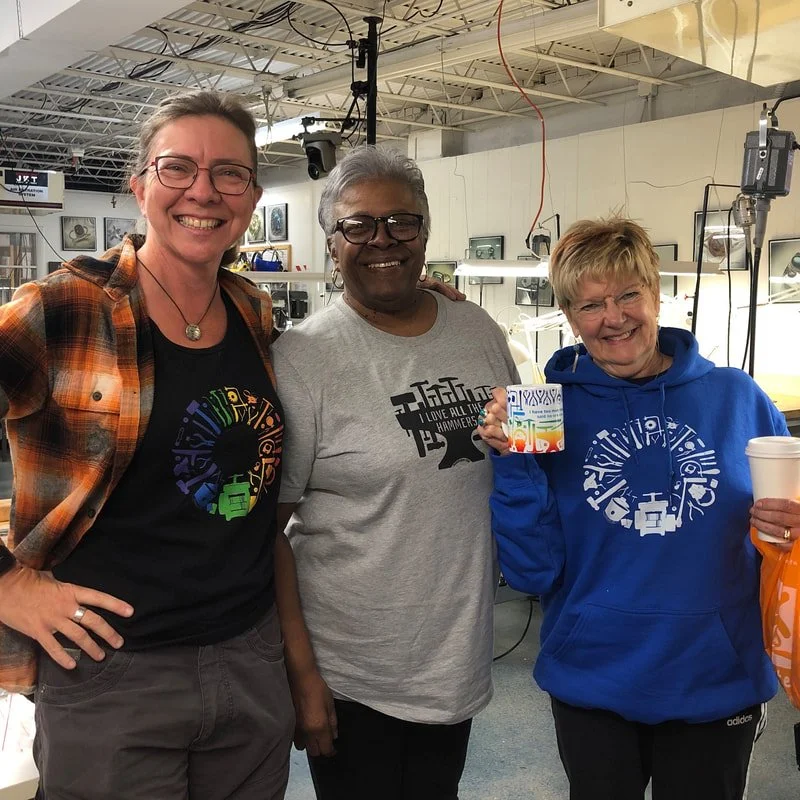 Big thanks to Andy the incredibly patient camera guy, and Leah the artist assistant for all her hard work, from keeping the Zoom folks connected to making sure I had ample coffee! And she gets bonus points for understanding and laughing at Mondobop's "I Sink and I know Things" tank top, not many people get that!