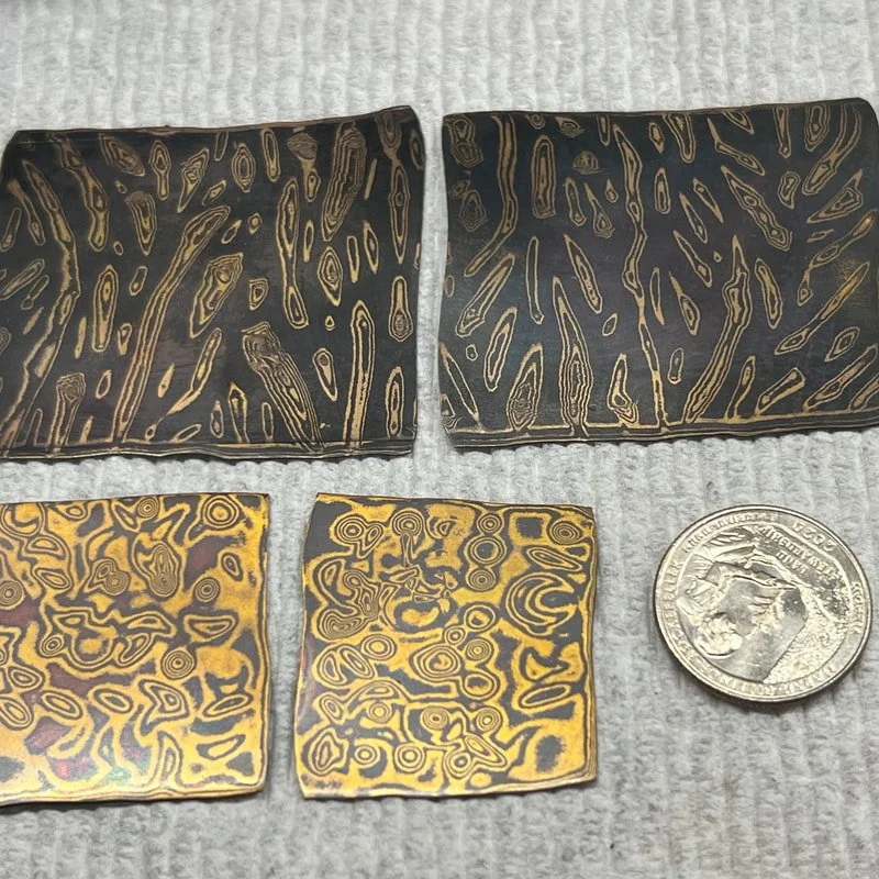 We had 13 students in all, 6 in the studio and 7 on Zoom. Val and her sidekicks Pat and Stephanie did a great job both in the workshop and finding fabulous restaurants too. Scott got two pitch bowls up and running, as well as some great samples. Shout out to Emily, her first mokume class and she did a fantastic job with both patterning and chisel-making. Cindy, another mokume first-timer, did a great job with her chiseled sample.